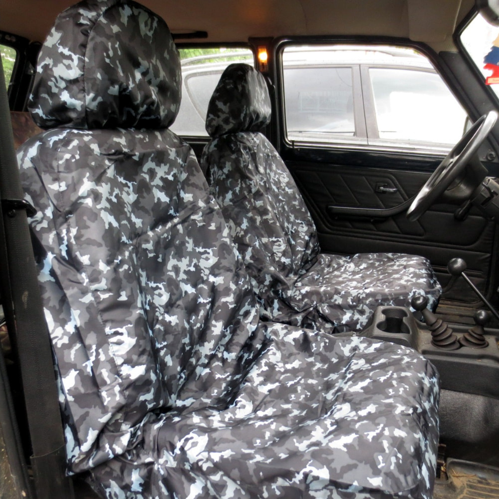 Грязезащитные чехлы на передние и заднее сиденья автомобиля НИВА 3-дв. ("серый камуфляж")
