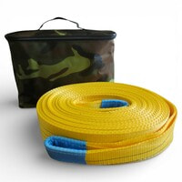 Удлинитель троса 10 т 20 м изготовлен из прочной полиэфирной ленты шириной 75 мм с разрывной нагрузкой ~11,6 т., петли защищены от истирания протекторной лентой. Длина 20 м, вес ~4,3 кг. Используется в качестве удлинителя лебедочного троса, а так же буксировочных и динамических строп. Поставляется в сумке на молнии (37х10х25 см).